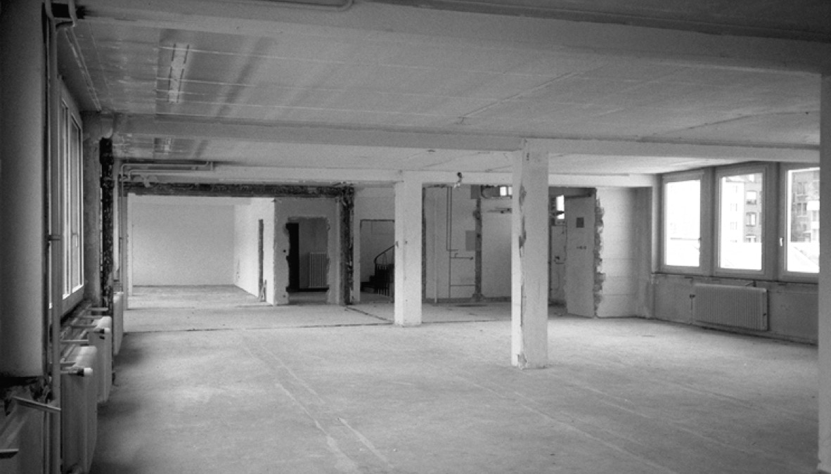 Die Büroetage eines ehemaligen Autohauses wurde bis auf die Rohbausubstanz abgebrochen und neu ausgebaut.