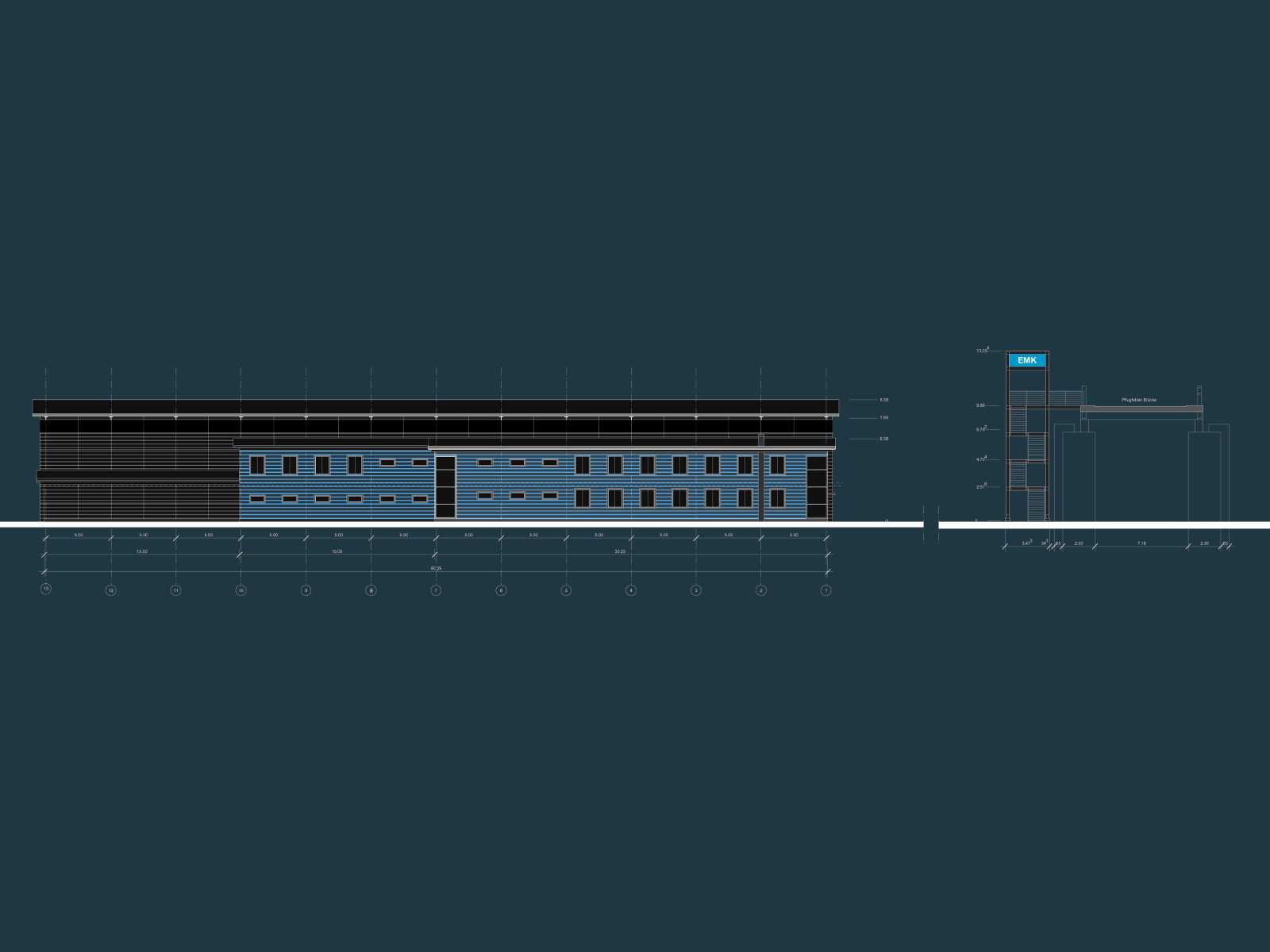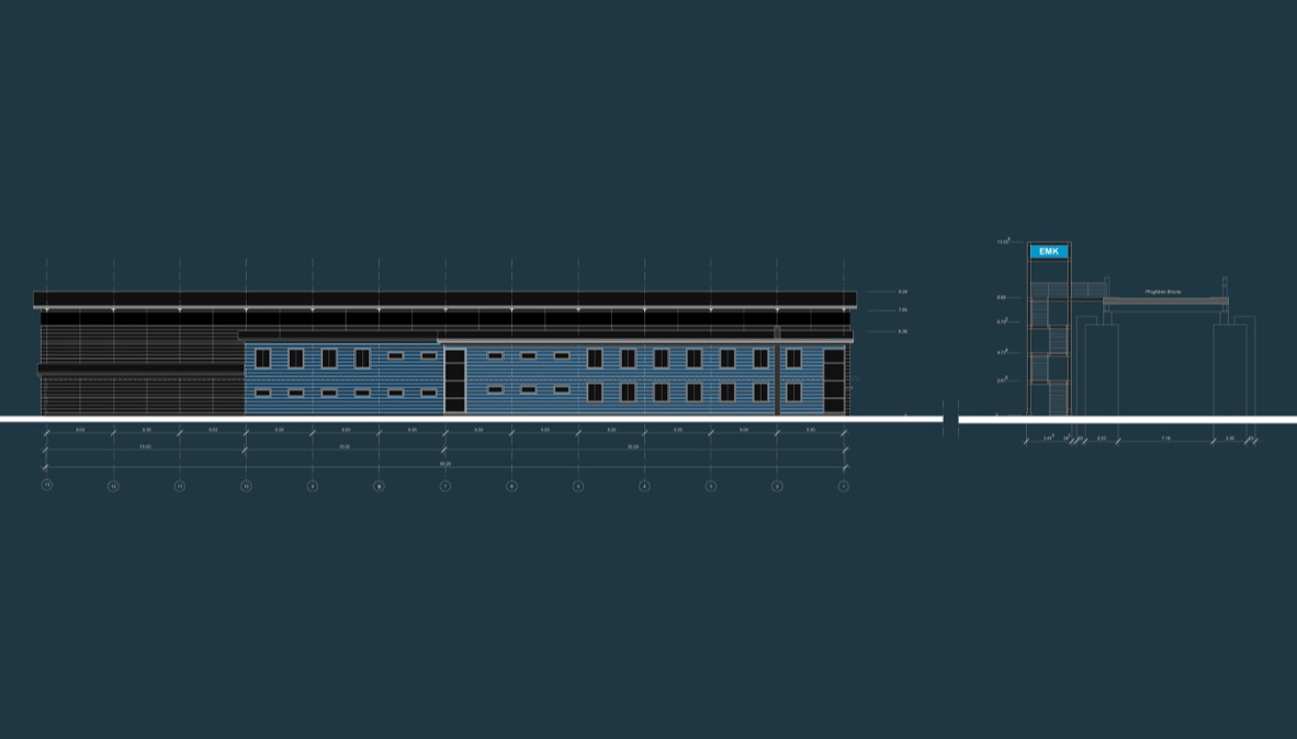 Um wettergeschützt an der Instandsetzung der historischen Schienenfahrzeuge arbeiten zu können, sollten fünf der insgesamt sechs bestehenden Gleiskörper überdacht werden. Ein Nebengebäude nimmt die Werkstätten, Büro- und Sanitärräume auf.