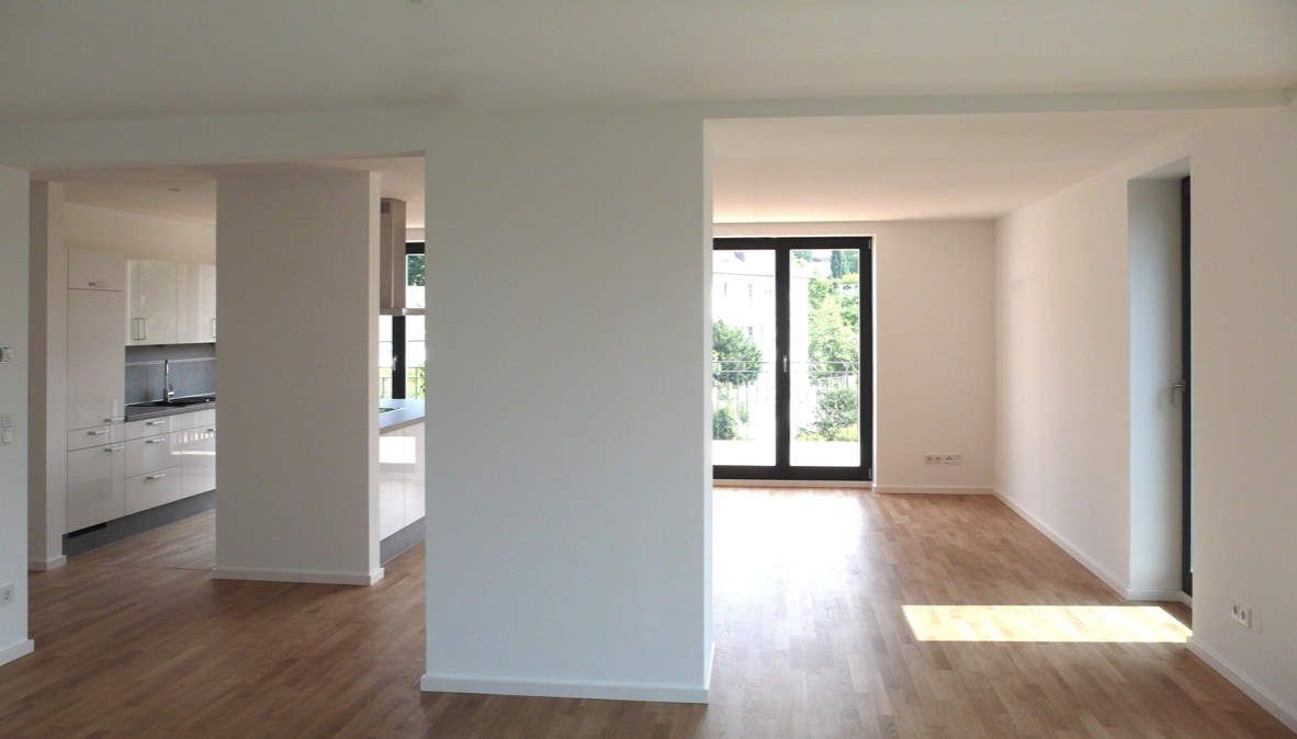 Das Bürohaus aus den 50er Jahren wurde kernsaniert und zu einem Wohn- und Bürohaus mit drei Wohneinheiten und einer Büroeinheit umgebaut.