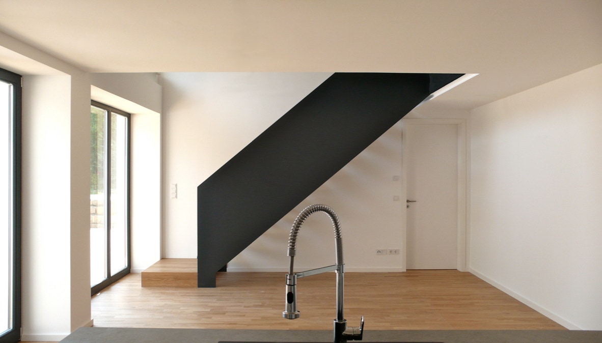 Bedingt durch die Lage am Hang sind die zwei untersten Geschosse ausschließlich zum rückwärtigen Garten hin orientiert. Diese Geschosse wurden zu einer Maisonette-Wohnung zusammengefasst und separat erschlossen (Haus im Haus).
