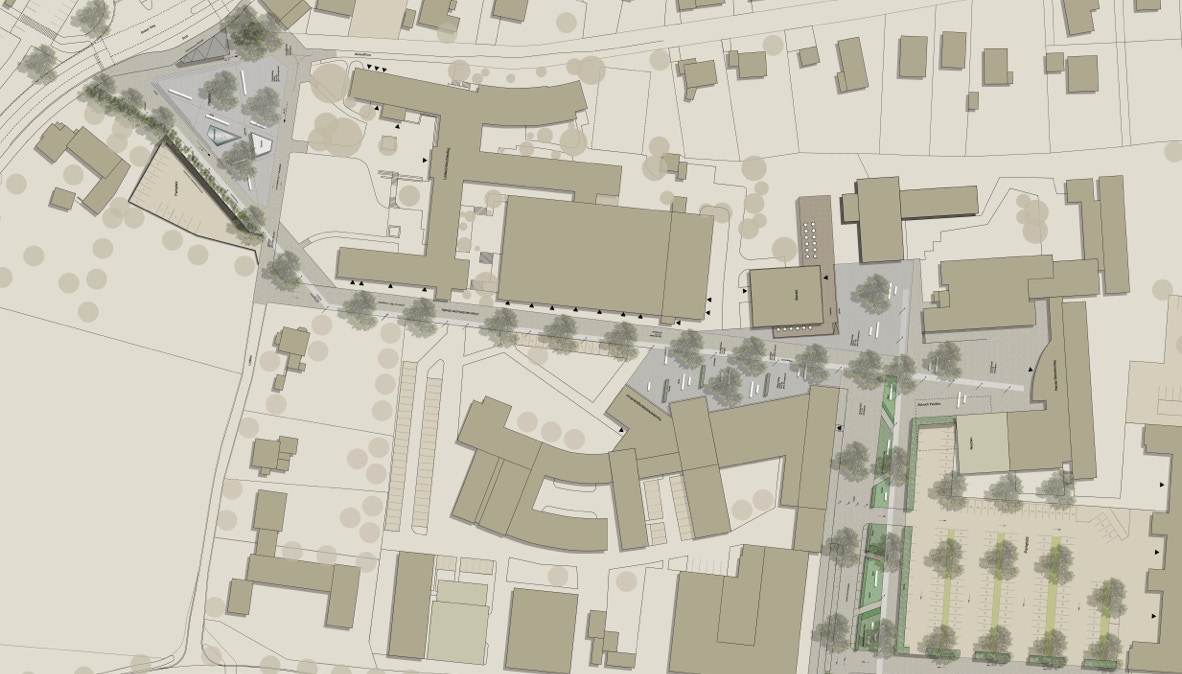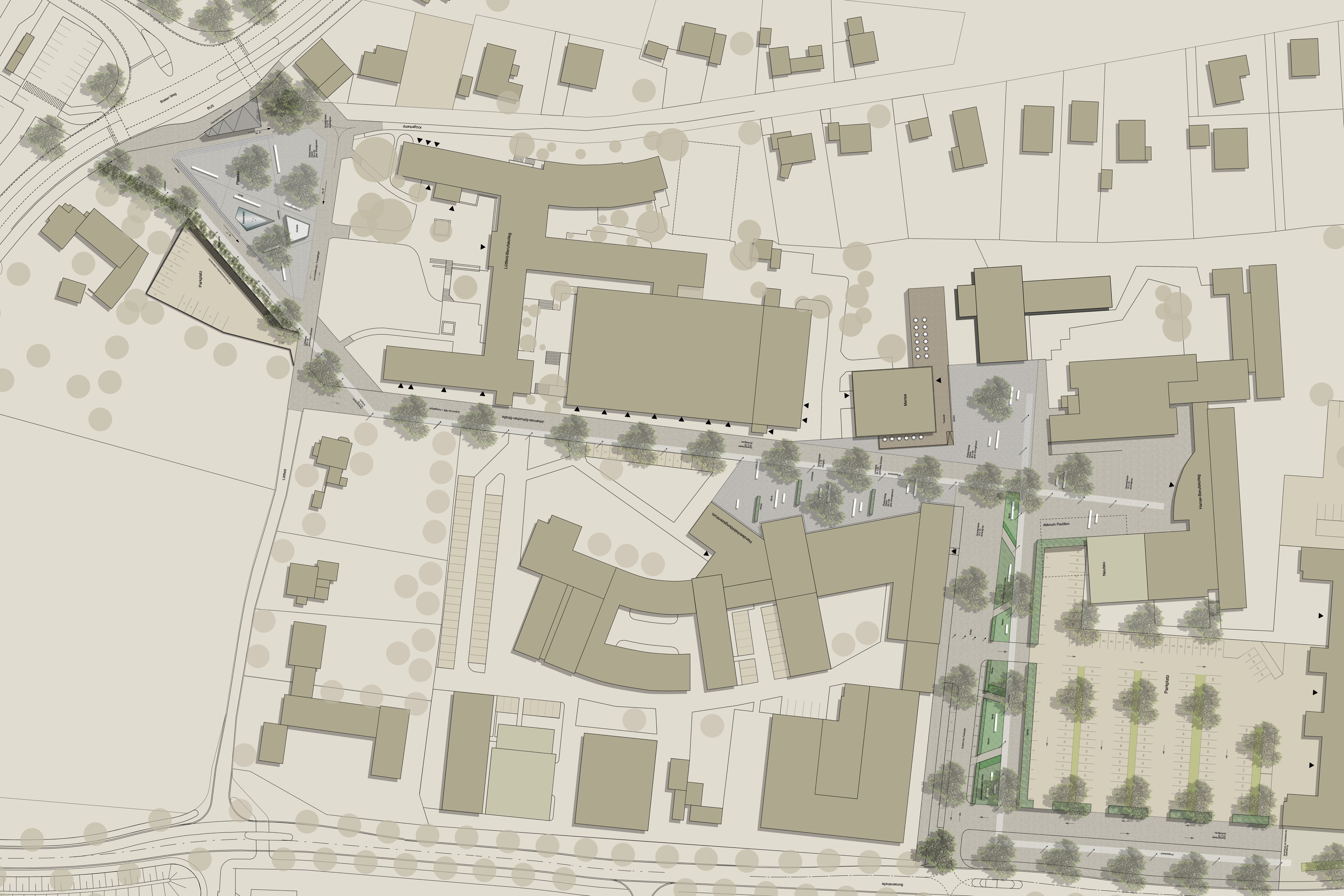 Die übergreifende Grundidee des Wettbewerbentwurfes ist, durch die klare Herausstellung der Wegebeziehungen zwischen den Bereichen der Platzfläche am Braker Weg, dem räumlichen Zentrum um die Mensa und der Lipperlandhalle sowie die Ausarbeitung der kleinräumlichen Vernetzung, Raumbereiche mit einer jeweils eigenen Atmosphäre zu modellieren.