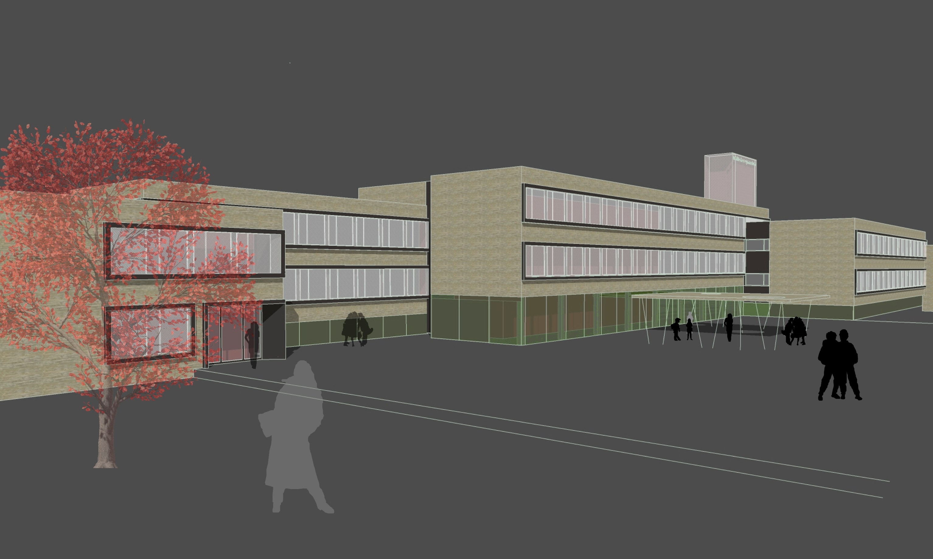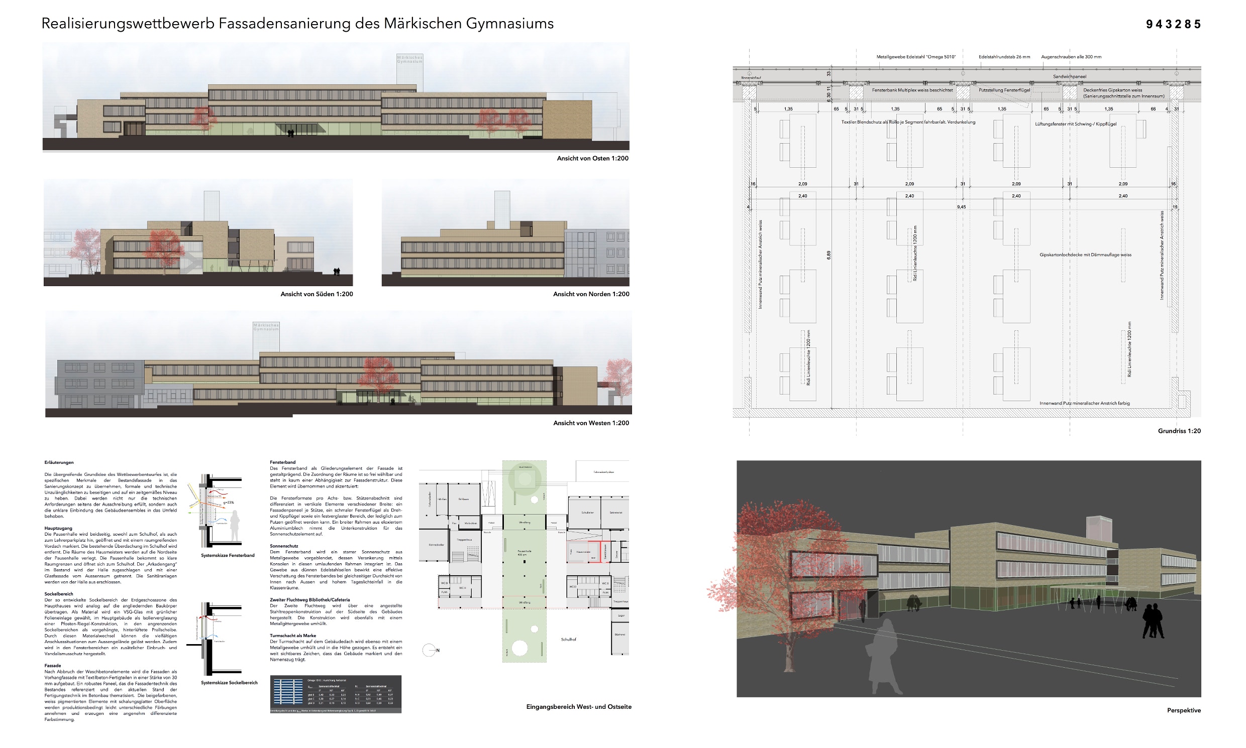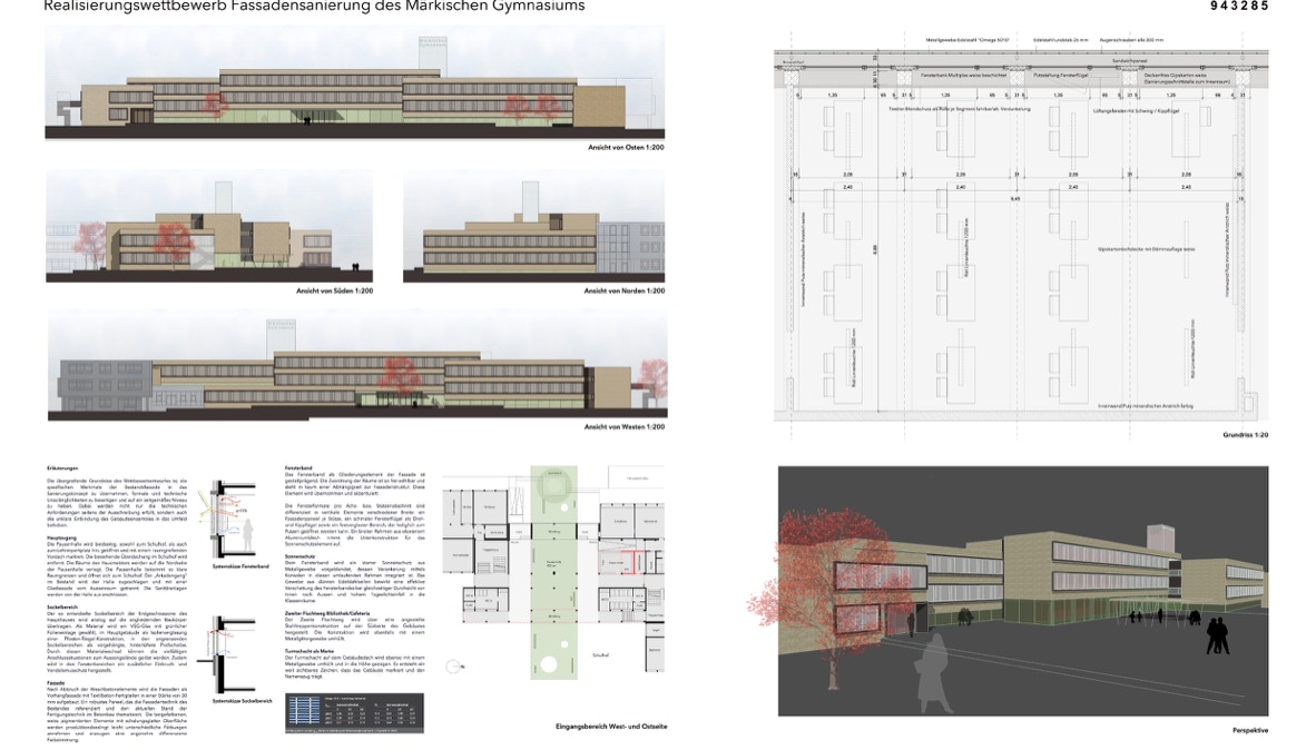 Die Grundidee des Wettbewerbentwurfes ist, die spezifischen Merkmale der Bestandsfassade in das Sanierungskonzept zu übernehmen, formale und technische Unzulänglichkeiten zu beseitigen und auf ein zeitgemäßes Niveau zu heben. Dabei werden nicht nur die technischen Anforderungen seitens der Ausschreibung erfüllt, sondern auch die unklare Einbindung des Gebäudeensembles in das Umfeld behoben.