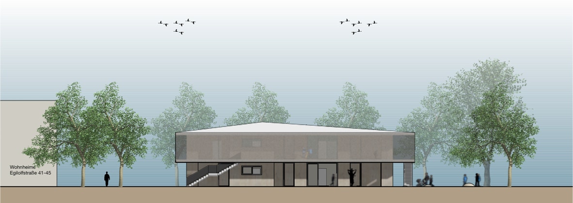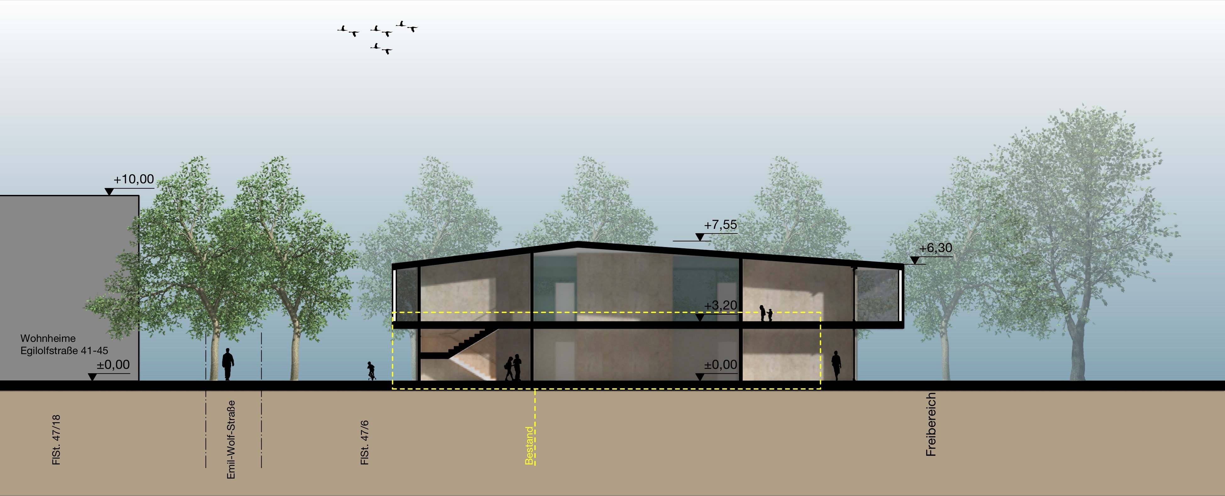 Der bestehende eingeschossige Bau aus den 60er Jahren genügt nicht mehr den heutigen Anforderungen, eine Sanierung ist unrentabel.